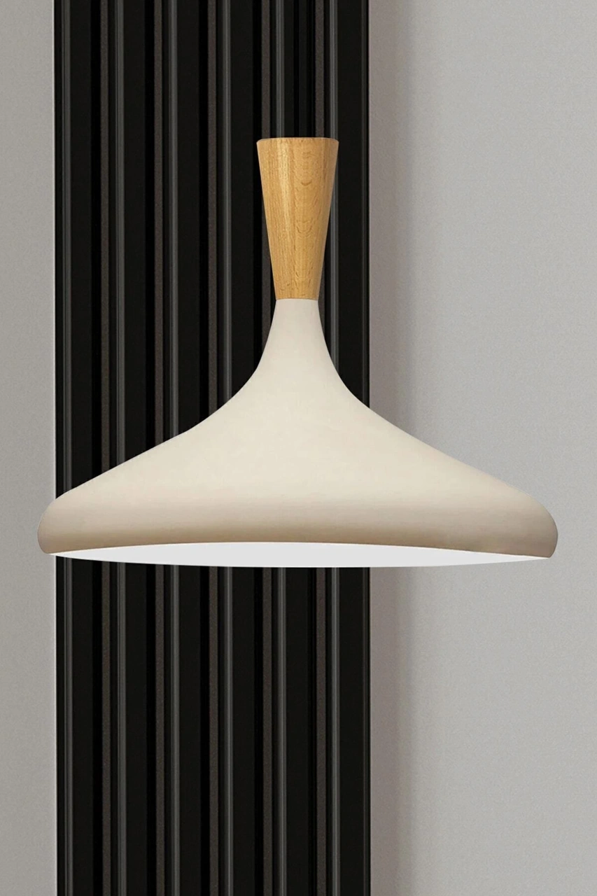 Champion Beyaz Iç Beyaz Ahşap Huni Tekli Avize Sarkıt Salon Mutfak Butik Lamba Aydınlatma Beyaz - Beyaz
