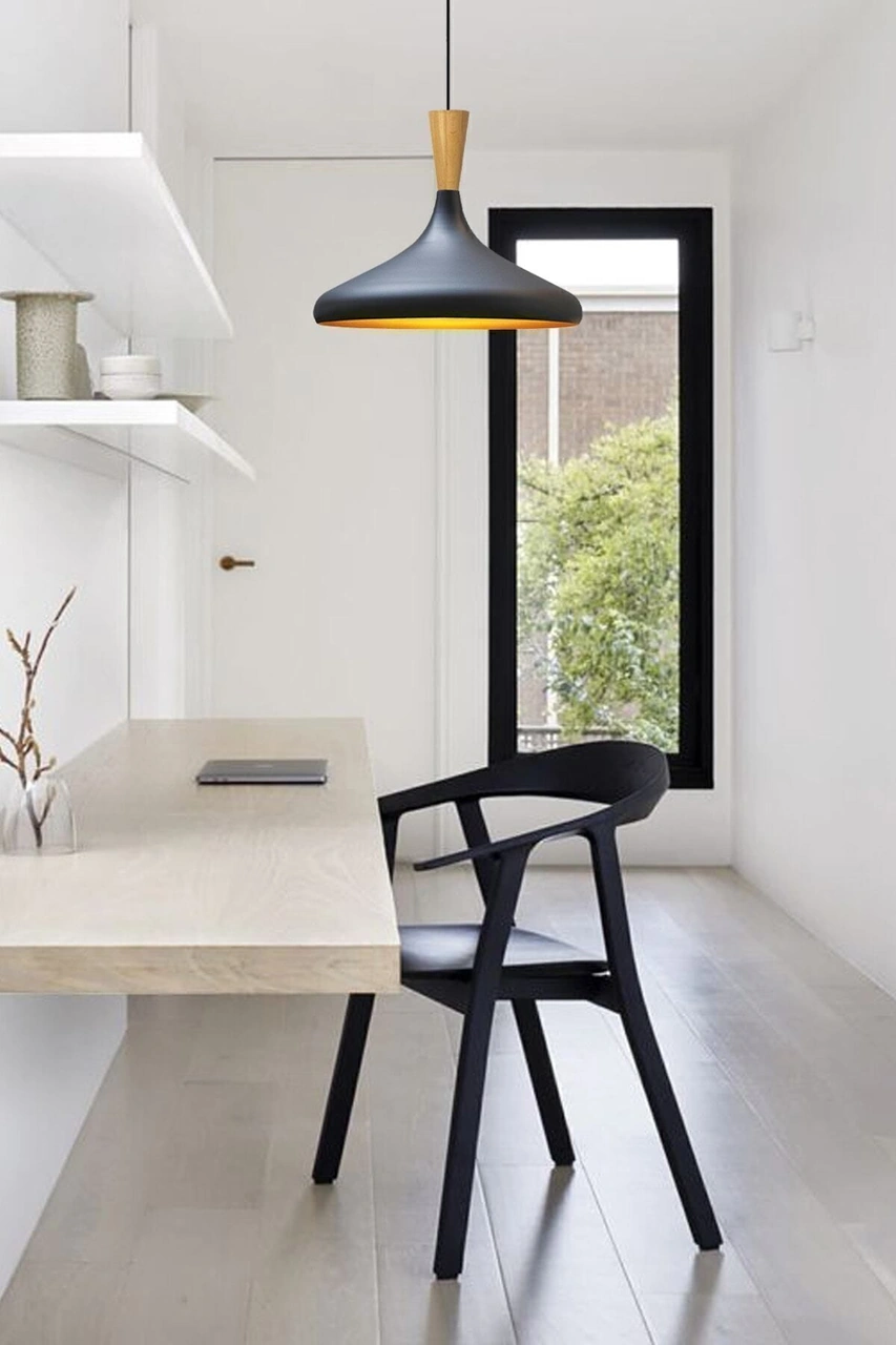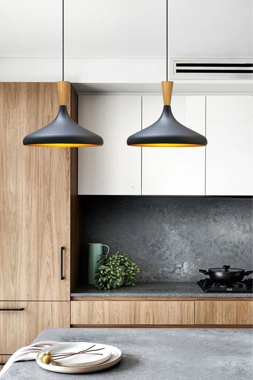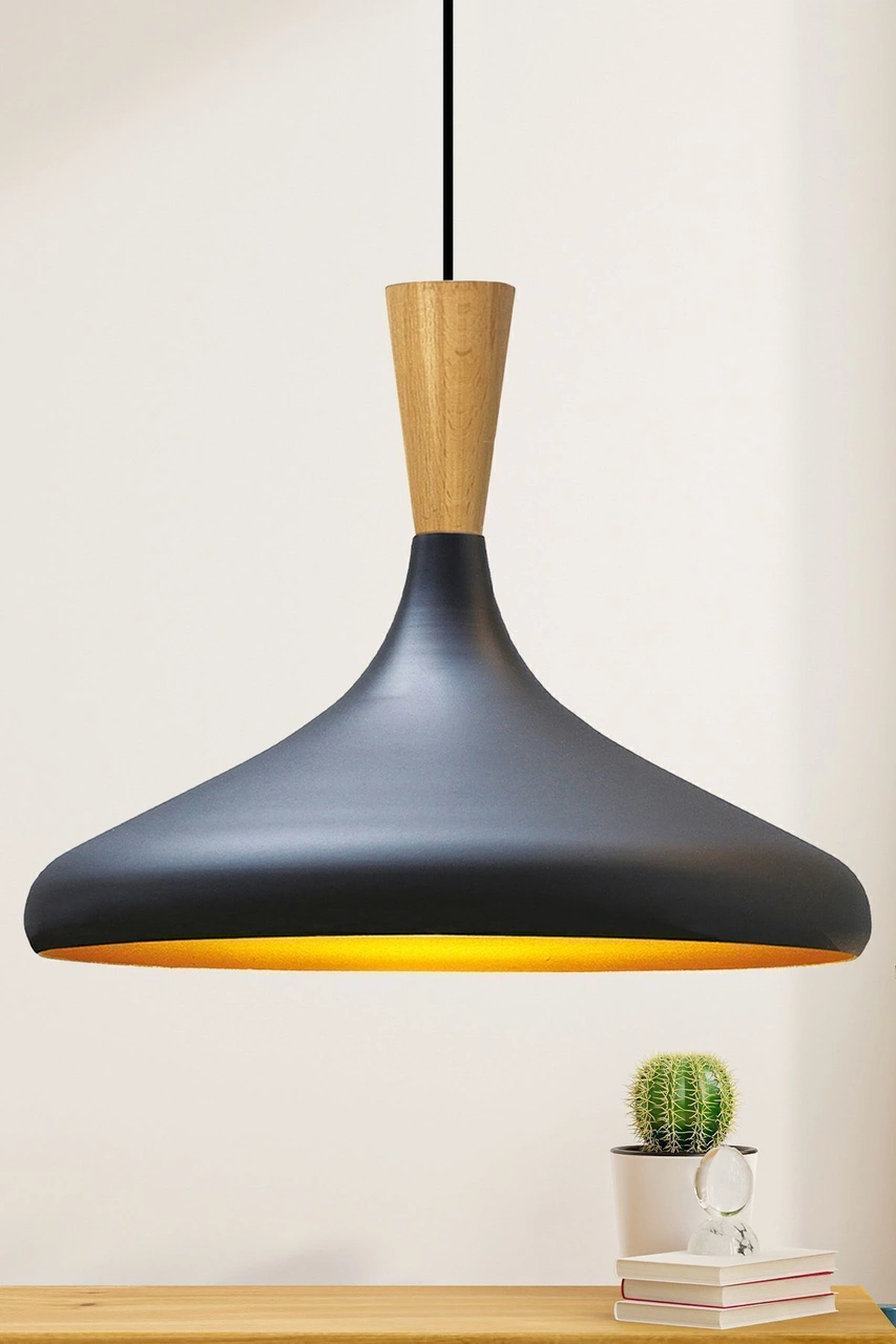 Champion Siyah Ahşap Huni Tekli Avize Sarkıt Salon Mutfak Cafe Butik Lamba Aydınlatma Avizeler Siyah