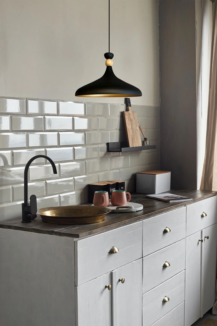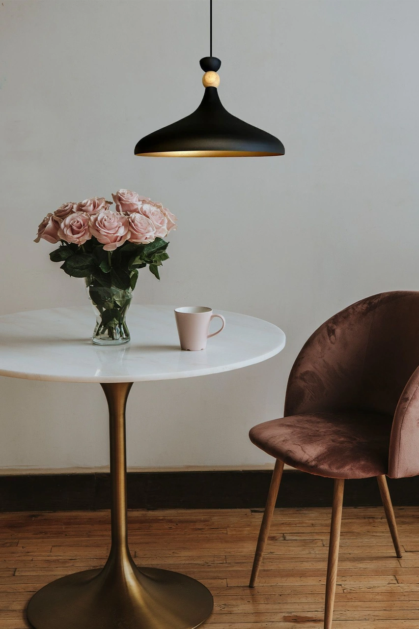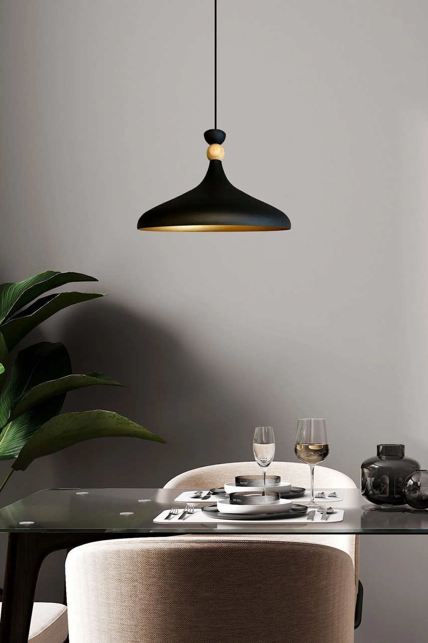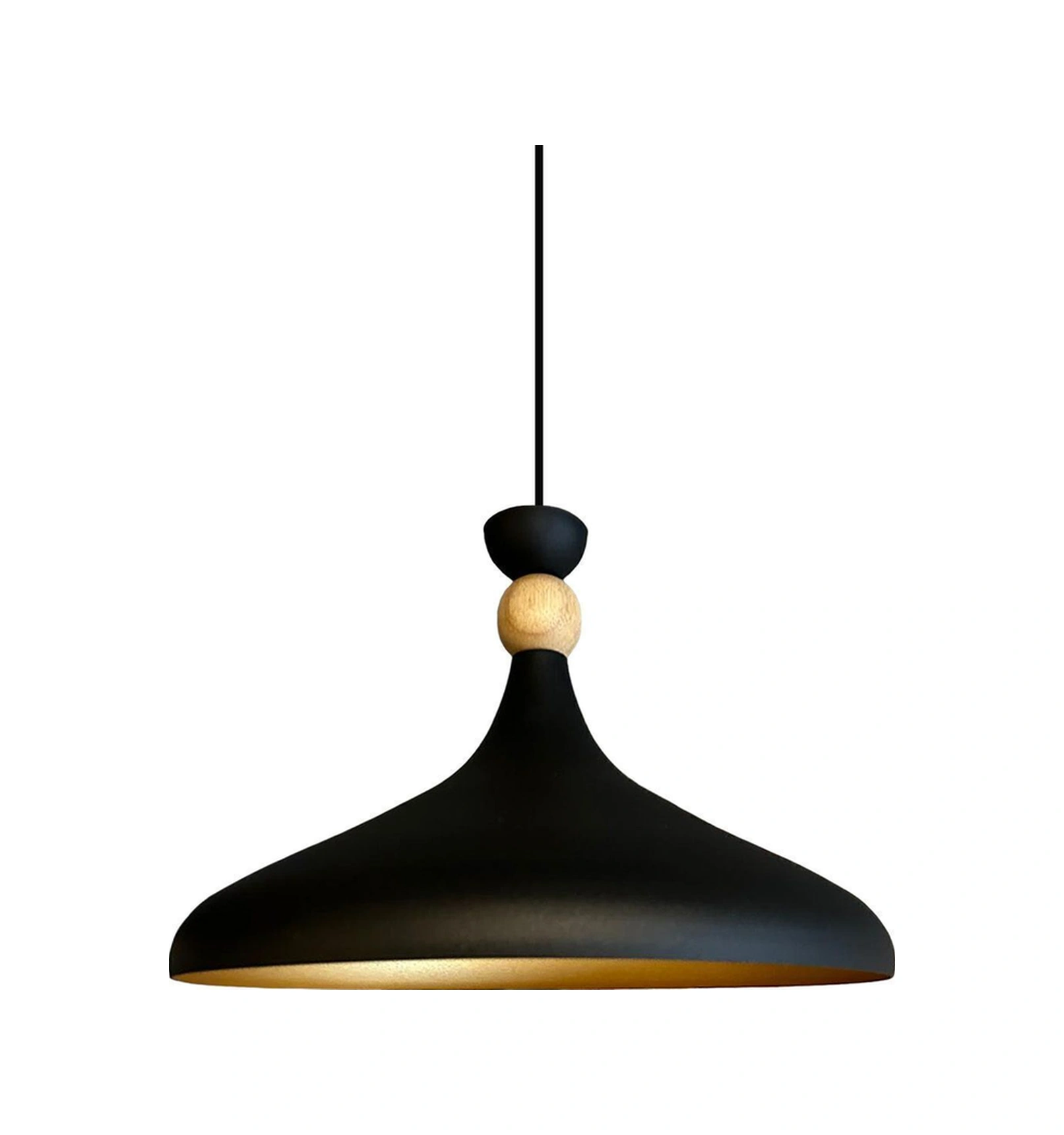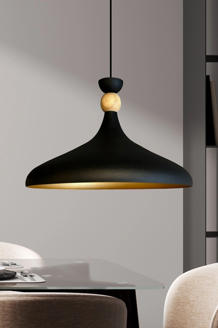 Champion Siyah Ahşap Şapka Tekli Avize Sarkıt Salon Mutfak Cafe Butik Lamba Aydınlatma Avizeler Siyah