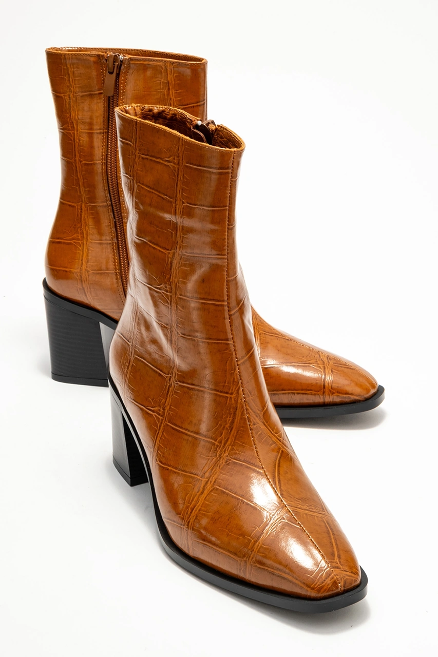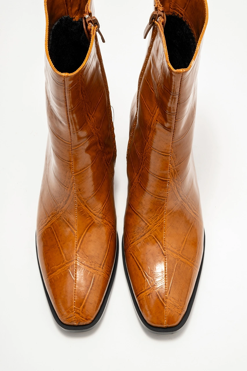Chara Taba Baskı Kadın Kalın Topuklu Bot Taba Baskı