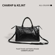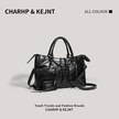 Charhp&kejnt Perçin Motosiklet Çantası Baidu Moda Omuz Askılı Çanta Kadın Siyah