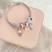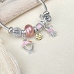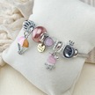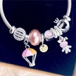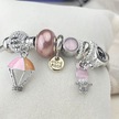 Charm Bileklik Tavşan Uçan Balon Figürlü Çelik Bileklik Gümüş Pembe Gümüş