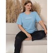 Charme Kadın Büyük Beden Bisiklet Yaka Milan Likralı Kısa Kol Pijama Takımı K601/249 - 1 Adet Mavi