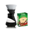 ürünü bu garip dripperı için aldım. Gerçekten garip bir yapısı var. Market 04 numara kağıt ile sıkıntı yaşadım, alttan patladı, düzeltilebilir gibi. Karaf kaliteli bir cam. Kapağı sert plastik yapılmış, silikon olsa daha iyiydi.