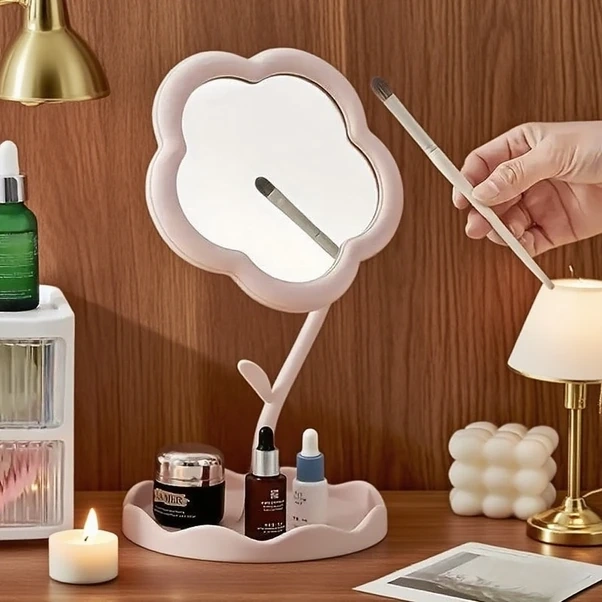 Chuangyinshop Beyaz Çiçekli Vantily Aynası - Taşınabilir, Döner, Mücevher Organizer Beyaz