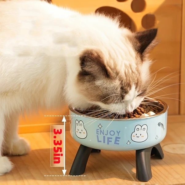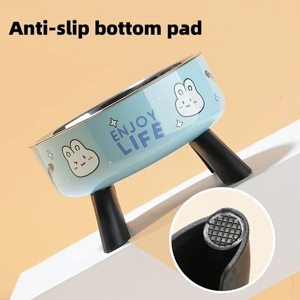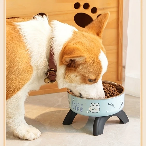 Chuangyinshop Koyu Kahverengi 304 Paslanmaz Çelik Ve Pp Kaymaz Tabanlı Pati Desenli Yükseltilmiş Kedi Köpek Mama Kabı