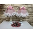 Çiçek Dekorlu Abajur İki Adet Dekoratif Eşya Pembe Diğer