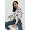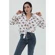 Çiçek Desen Kol Katlamalı Gömlek - Beyaz-beyaz Beyaz