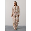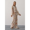 Çiçek Desen Önü Bağlamalı Pantolon Takım - Taş Altın