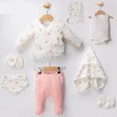 Çiçek Desenli Dantel İşlemeli %100 Pamuk Kız Bebek 8'li Hastane Çıkışı Beyaz