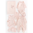 Çiçek Desenli Fırfırlı Pamuklu 10 Parça Kız Bebek Hastane Çıkışı Bebek Takımı Somon
