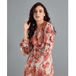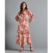 Çiçek Desenli Kadın Elbise - Katlı Etek Detaylı - Fırfırlı Kol - V Yaka - Modern Ve Şık Tasarım - Günlük Ve Özel Gün İçin Elbise Bej