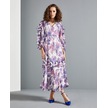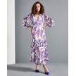 Çiçek Desenli Kadın Elbise - Katlı Etek Detaylı - Fırfırlı Kol - V Yaka - Modern Ve Şık Tasarım - Günlük Ve Özel Gün İçin Elbise Ekru