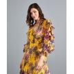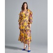 Çiçek Desenli Kadın Elbise - Katlı Etek Detaylı - Fırfırlı Kol - V Yaka - Modern Ve Şık Tasarım - Günlük Ve Özel Gün İçin Elbise Sarı