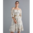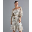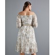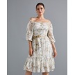 Çiçek Desenli Kadın Elbise - Omzu Açık - Düğme Detaylı - Modern Ve Şık Tasarım - Günlük Ve Özel Günler İçin Elbise Ekru