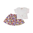 Çiçek Desenli Kız Çocuk Etekli Takım Krem