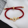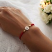 Çiçek Figürlü Örgü İpli 14 Ayar Altın Plakalı Serbest Sembollü Hediye Bileklik-324sembol-kırmızı Altın