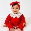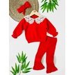 Çiçek Fisto Yaka Detay Fitilli Tayt Mevsimlik 3 Parça Set Kırmızı