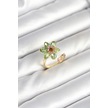 Çiçek Model Yeşil Pirinç Gold Renk Yüzük Renkli