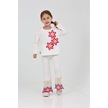 Çiçek Nakış Detaylı Kız Çocuk Takım Beyaz