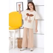 Çiçek Nakışlı İspanyol Paça Mevsimlik Takım Bej
