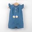 Çiçek Nakışlı Kız Kısa Kot Tulum Lacivert