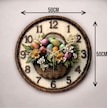 Çiçek Sepeti Kabartma Görünümlü Renkli Baskı Desenli Sayılı Hediyelik Ahşap Sessiz Duvar Saati 50cm ÇOk Renkli