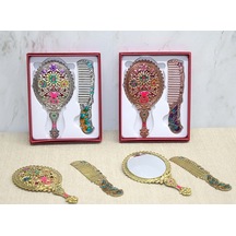 Çiçekli Ayna Ve Tarak Seti Küçük Boy