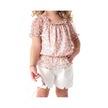 Çiçekli Bluzlu Kız Çocuk Şortlu Takım Krem