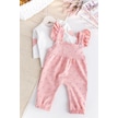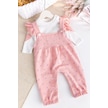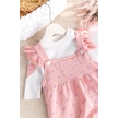 Çiçekli Fırfırlı 100% Pamuk 2'li Kız Bebek Salopet Tulum Set Somon