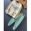 Çiçekli Kanguru Cepli Kız Çocuk 2'li Takım Yeşil