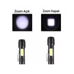 Çift Aydınlatmalı Güçlü Mini Boy Usb Şarjlı El Feneri 2000 Lümen Siyah
