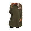 Çift Cepli Bayan Kışlık Sweatshirt Saf Renk Peluş Yuvarlak Yaka Bol Asker Yeşili Haki