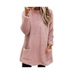 Çift Cepli Bayan Kışlık Sweatshirt Saf Renk Peluş Yuvarlak Yaka Bol Pembe