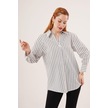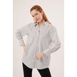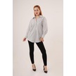 Çift Çizgi Geçişli Düğmeli Gri Gömlek Karışık Çok Renkli
