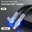 Çift Dönen Hızlı Şarj Kablosu Usb C Tip-c Şarj Cihazı Sıvı Silikon Kablo Huawei Black 1m Diğer