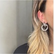 Çift Halka Formlu Gümüş Renk Çelik Küpe Minimal Ve Modern Tasarım Gümüş