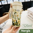 Çift İçecek Kahve Fincanı Kadın Yüksek Değerli Seramik Astar 316 Paslanmaz Çelik Termos Bardak Araba Basit Pipet Bardak 303 Çift İçecek Seramik Nergis