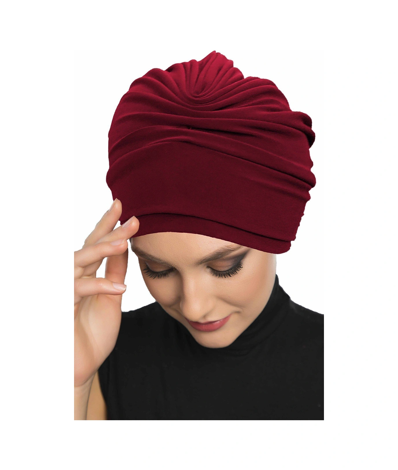 Çift Katlı Astarlı Bordo Hazır Türban Tesettür Dış Ve Havuz Bonesi Bordo