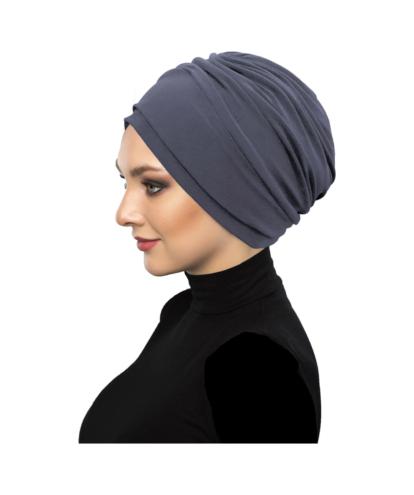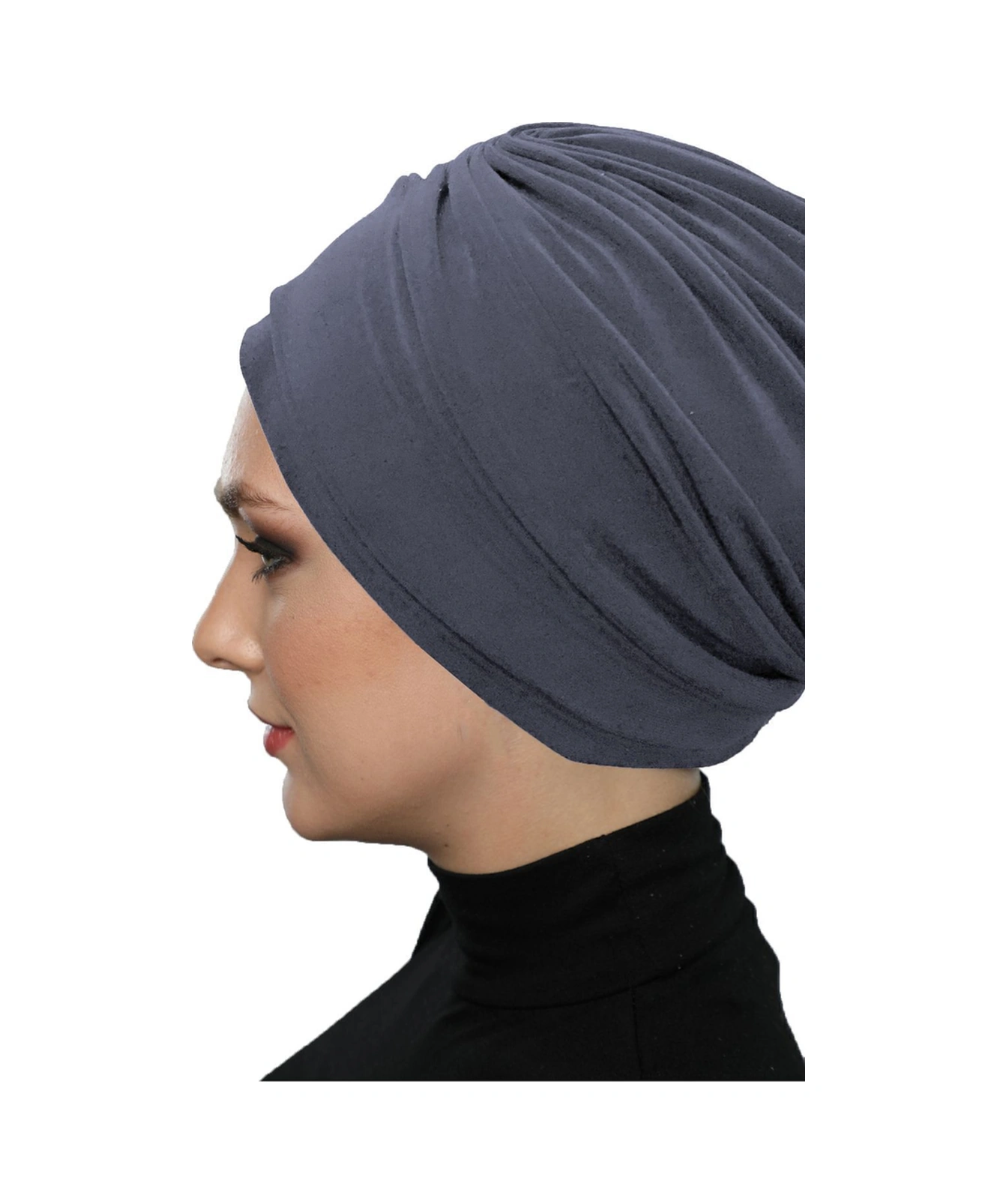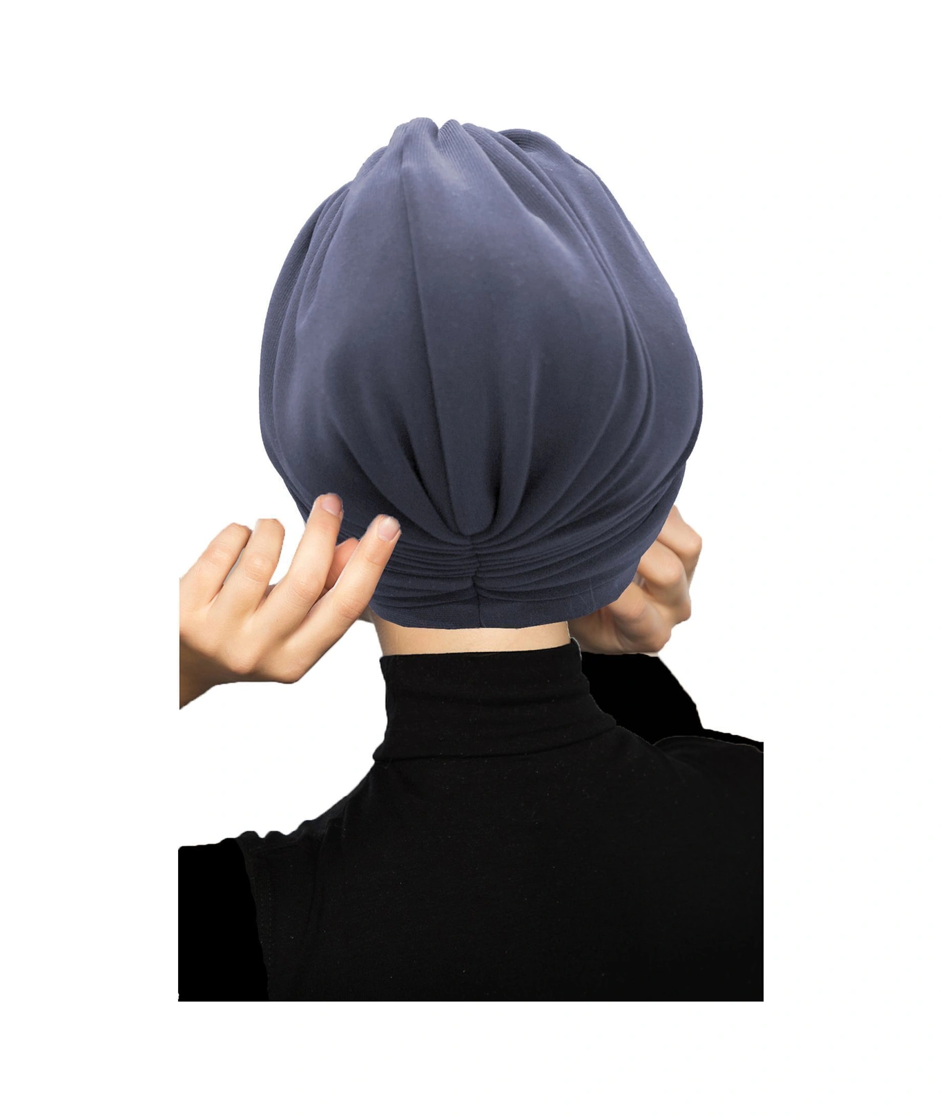 Çift Katlı Astarlı Hazır Koyu Gri Türban Tesettür Dış Ve Havuz Bonesi Koyu Gri