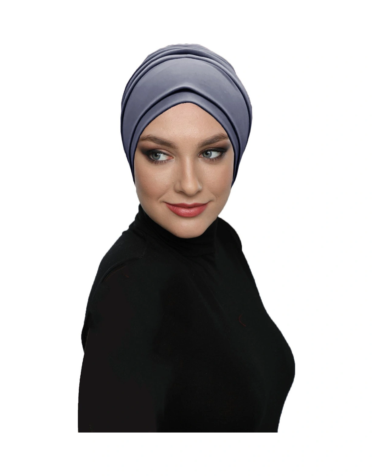 Çapraz Penye Astarlı Koyu Leylak Hazır Türban Tesettür Havuz Bonesi Koyu Leylak
