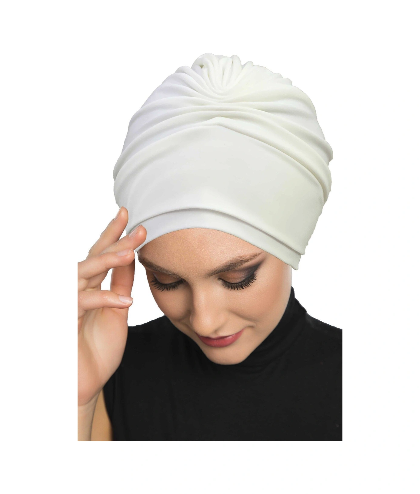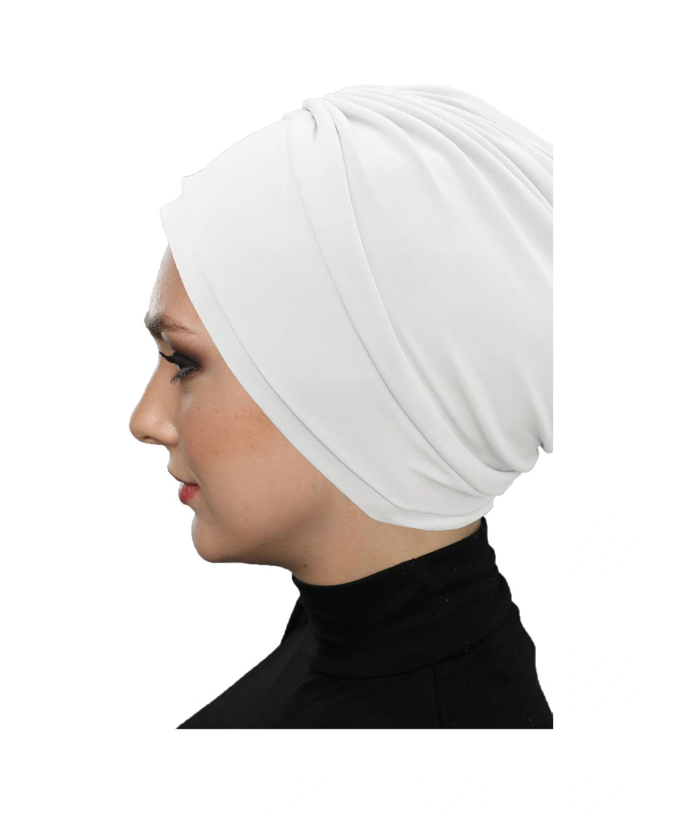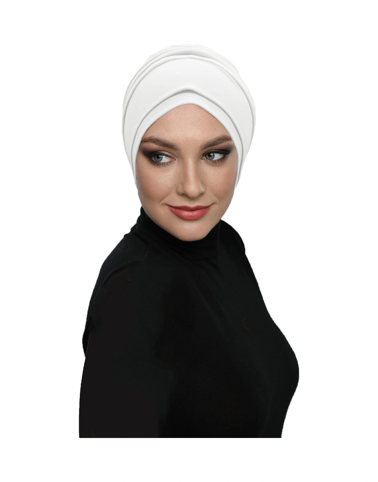 Çift Katlı Astarlı Krem Hazır Türban Tesettür Dış Ve Havuz Bonesi Krem