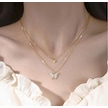 Çift Katlı Kadın Kelebek Kolye - Kararmaz Altın Kaplama