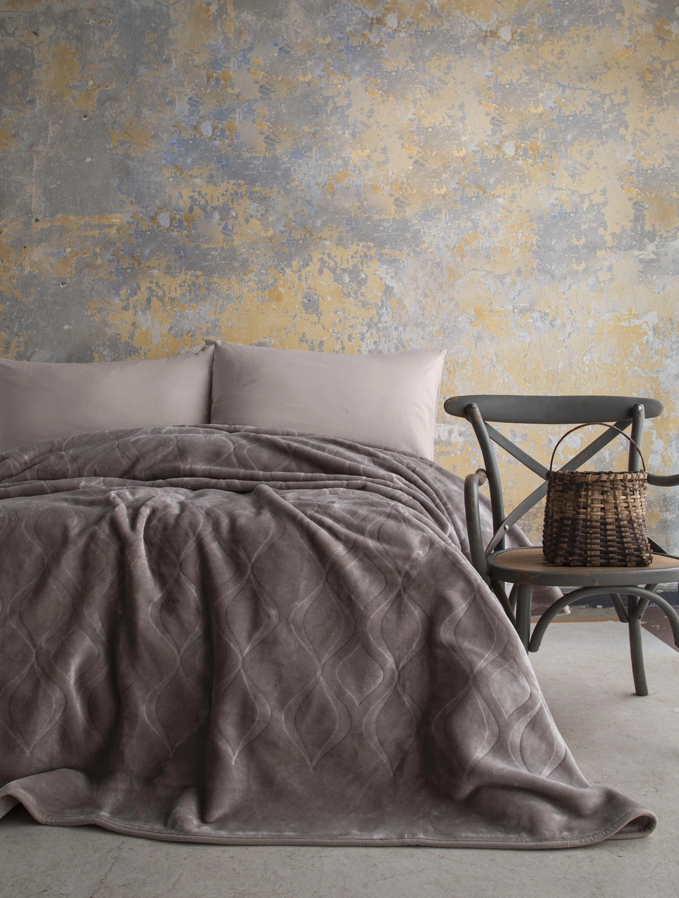 Çift Kişilik Mercy Vizon Embos Desen Battaniye Vizon