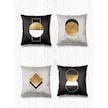 Çift Tarafı Farklı Desenli Süet 4'lü Kırlent Kılıfı-Altın Geometrik Şekiller