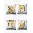 Çift Tarafı Farklı Desenli Süet 4'lü Kırlent Kılıfı-Gri Mermer ve Altın Tüyler