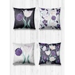Çift Tarafı Farklı Desenli Süet 4'lü Kırlent Kılıfı-Siyah Beyaz Lale