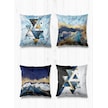 Çift Tarafı Farklı Desenli Süet 4'lü Kırlent Kılıfı-Üçgen Mavi Mermer