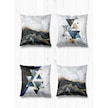 Çift Tarafı Farklı Desenli Süet 4'lü Kırlent Kılıfı-Üçgen Siyah Beyaz Mermer