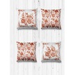 Çift Tarafı Farklı Desenli Süet 4'lü Kırlent Kılıfı-Vintage Hayvanlar Kahverengi